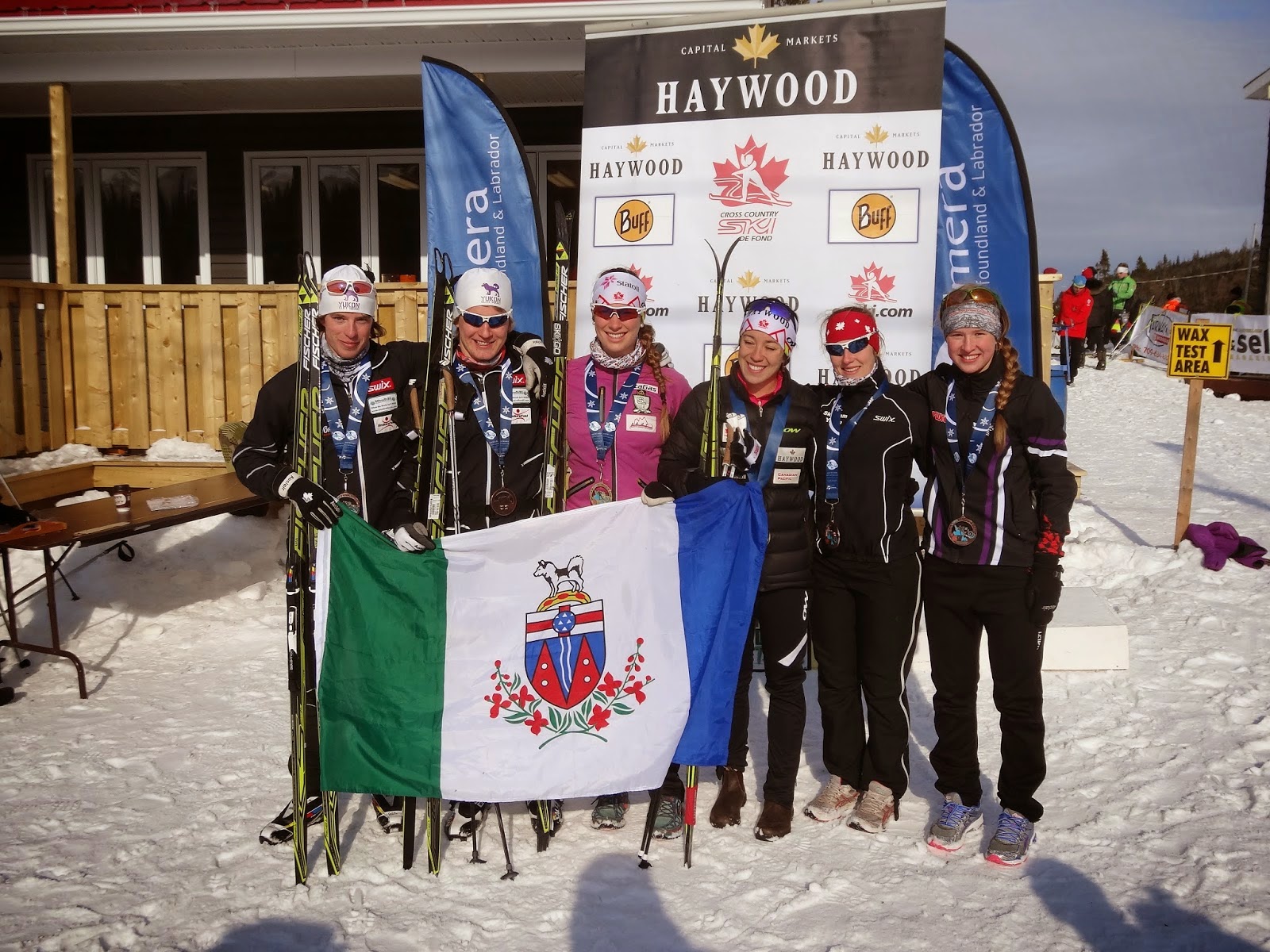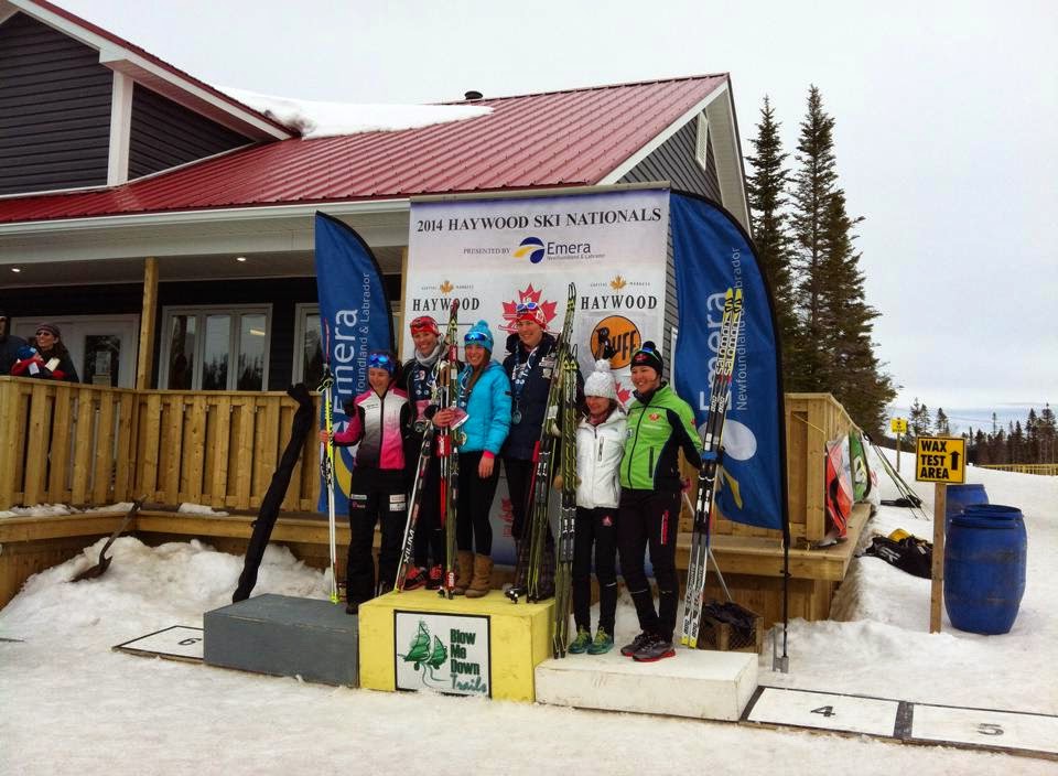 From Whistler BC last year to Corner Brook Newfoundland this year, the 2014 Ski Nationals literally took us from coast to coast. We were on the rock for 13 days and experienced everything from -20 winter weather to 100km/hr winds to +6 degrees and rain to beautiful sunshine. I was amazed by how quickly the weather could change. While in Corner Brook I raced all five of the Nationals races. I did not do the team sprint last year so I was very excited to be racing it this year with my Whitehorse and AWCA teammate Emily Nishikawa who has just returned from the Olympics in Sochi. The team sprint was a classic race which we both love and together we were able to pull away from the rest of the teams in the first 2 laps to take first by a comfortable margin. Our second Whitehorse team made up of Kendra Murray and Annah Hanthorn skied an incredible race as well to place 3rd and join us on the podium! With Knute and Colin taking third in the men’s race it was a great first day for the Whitehorse club.