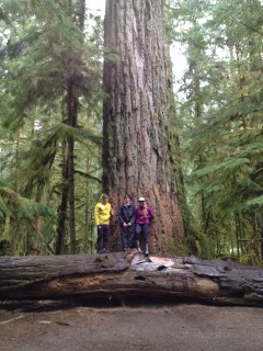 | Feeling dwarfed by the Douglas fir trees in Cathedral Grove, we couldn’t even fit the whole tree in the photo… |