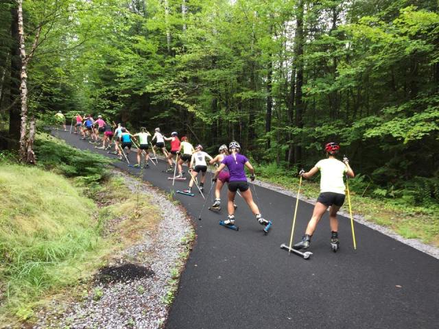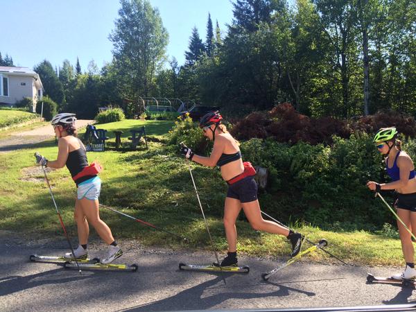 Despite my inability to tolerate heat, the camp has been a lot of fun and very productive. Thankfully for me, I have had my Buff tech headbands to help regulate my temperature and reduce the beads of sweat that drop down my face. There has been a lot of roller skiing with a few running workouts mixed in for variety. A 3hrs run that ended au Chutes Jean LaRose and an uphill stair climbing intensity were among some of the more unique workouts. We also returned to the falls on a few other occasions for some swimming and to soak up the summer sun.Â