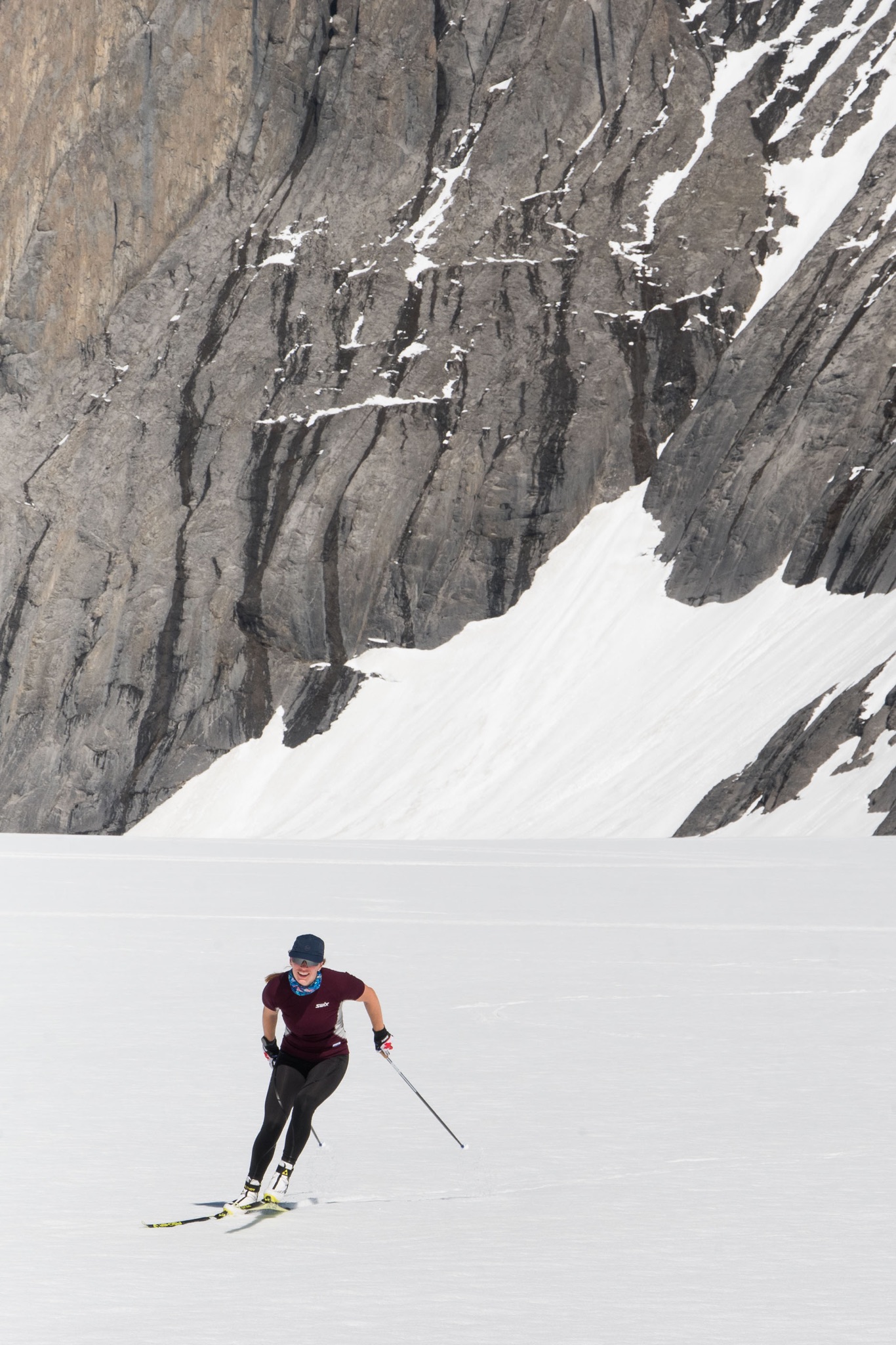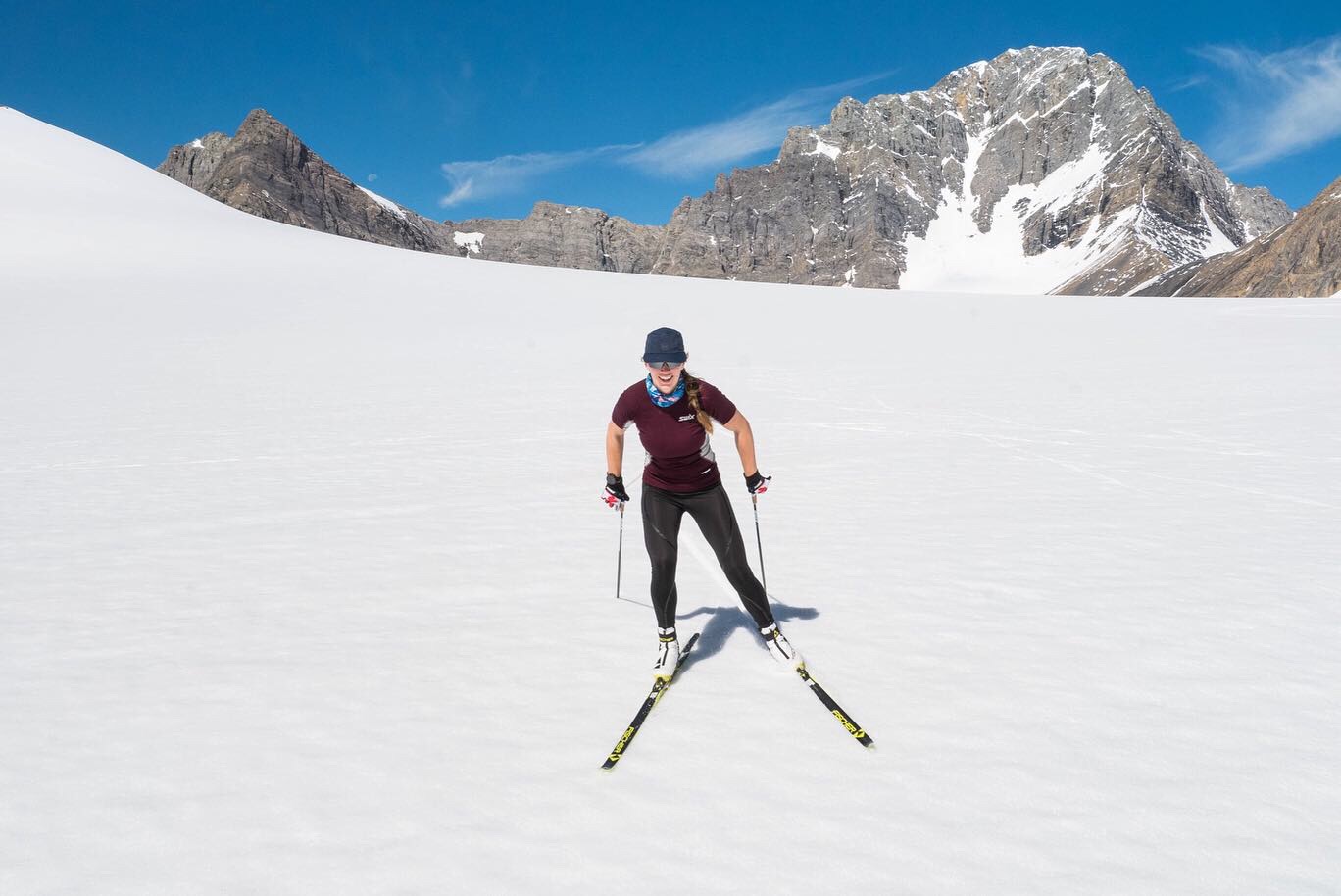 The past few years I have been on the glacier in August, as the snow pack is already starting to recede. With our trip up to the Haig in July this year, coupled with the cool and wet spring Canmore experienced, the ski conditions were phenomenal. There was a fresh snowfall the day we went into the glacier, so we had 4 days of prime spring skiing conditions in the middle of summer. As always, it’s great to get back on skis after a few months of dry-land training to reconnect with that on snow technique and feeling. Especially with classic striding, roller skiing just isn’t the same. Glacier skiing is a great way to check in on the progress being made towards the summer’s technique goals and of course do some crust skiing. It’s a ton of fun to be able to ski mid summer, a camp that is good for the body and good for the soul!
